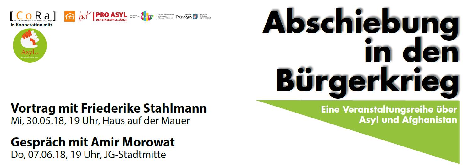 Man kann Menschen nach Afghanistan abschieben – so die Einschätzung der Bundesregierung und einiger Gerichte. Die Sicherheitslage im Land lasse dies durchaus zu. Flüchtlingsorganisationen und einige Bundesländer hingegen kritisieren die Praxis, abgelehnte Asylsuchende dorthin abzuschieben. In zwei Veranstaltungen soll diese Problematik thematisiert werden. Am 30. Mai spricht Friederike Stahlmann über die Situation in Afghanistan. Sie ist Rechtswissenschaftlerin und Anthropologin am Max-Planck-Institut für Sozialanthropologie in Halle und hat mehrfach das Land bereist hat. Am 5. Juni berichtet Amir Morowat, was es für Geflüchtete bedeutet, abgeschoben zu werden. Er hat Ingenieurswissenschaften in China studiert und lehrte nach seiner Rückkehr an der Nationalen Militärakademie Afghanistans. 2015 floh er nach Europa, 2017 drohte ihm die Abschiebung nach Afghanistan.