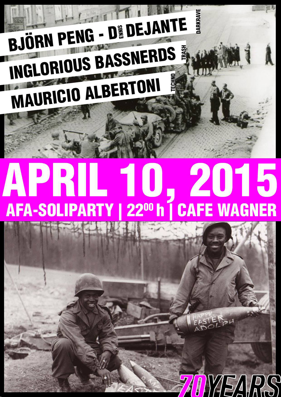 Am 13.04.1945 wurde Jena von der US-Army besetzt. Dies nehmen wir zum Anlass und wollen dies 70 Jahre später gebührend feiern. Daher haben wir einige Gäste eingeladen und wollen ein Freudenfeuerwerk mit euch abschießen.