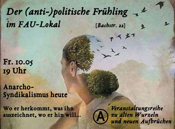 Mit dieser kleinen Veranstaltungsreihe, wollen wir ein wenig über den lokalen Tellerrand schauen und uns gedanklich dem Anarchismus widmen. Bekanntermaßen gibt es sehr verschiedene anarchistische Strömungen und Ansätze. Nach einem Input zur Pluralität im Anarchismus, widmen wir uns drei Strömungen: Dem „synthetischen Anarchismus“, dem anarcho-kommunistischen „Plattformismus“ und schließlich dem „Anarcho-Syndikalismus“.
