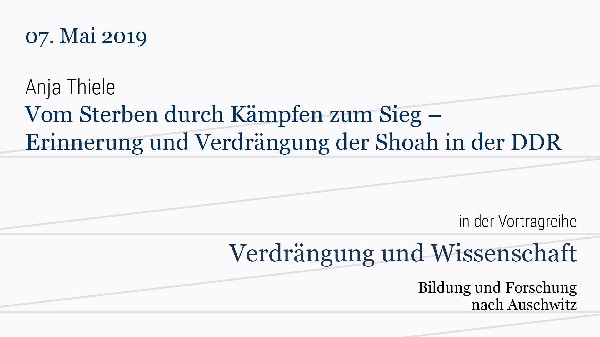 Vor­trag von Anja Thiele: Vom Ster­ben durch Kämpfen zum Sieg — Erin­nerung und Ver­drän­gung der Shoah in der DDR.