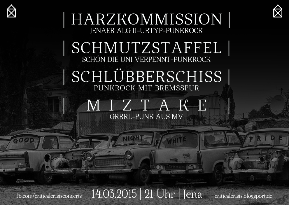 Critical Crisis Concert mit Harzkommission, Schmutzstaffel, Schlübberschiss und Miztake