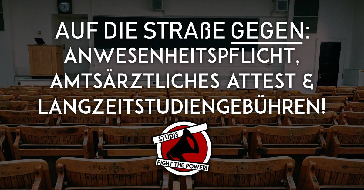 Wir wollen deswegen am 18.01.2018 in einer Demo gemeinsam zum Landtag ziehen und unseren Forderungen Gehör verschaffen. Wie z. B., dass die Anwesenheitspflicht komplett abgeschafft werden soll oder die Hochschule im Krankheitsfall kein amtsärztliches Attest mehr verlangen kann, welches für uns Extraaufwand, ‑nerven und ‑kosten bedeutet.