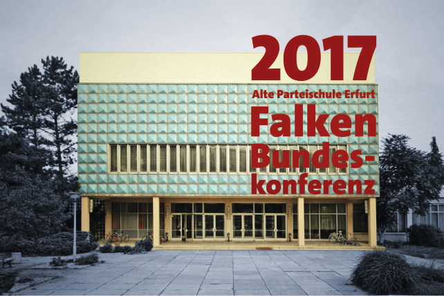 Die Ver­anstal­tung gehört zum Rah­men­pro­gramm der Falken Bun­deskon­ferenz, die 2017 in Thürin­gen stat­tfind­et. Inter­essierte sind dazu her­zlich ein­ge­laden.