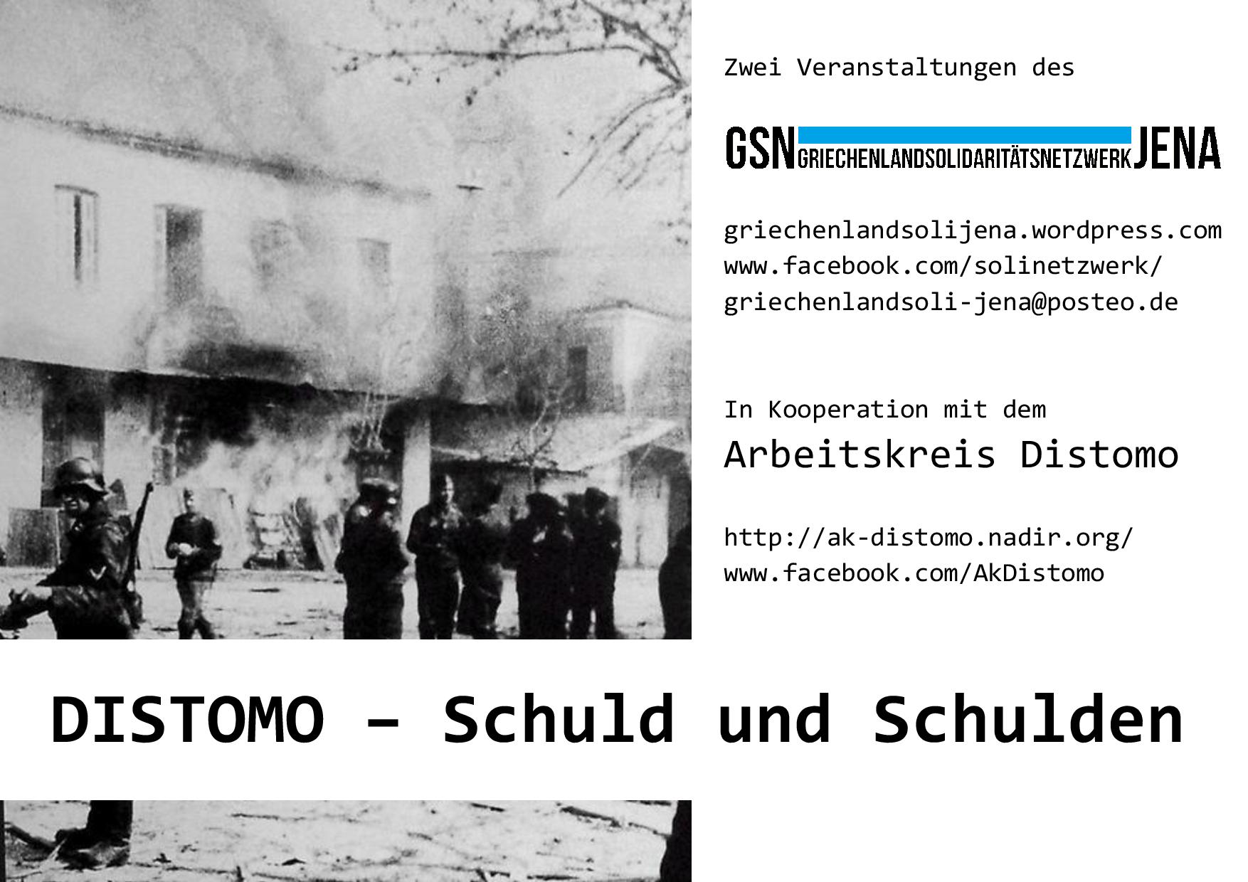 Am 10. Juni 1944 wurde das griechis­che Dorf Dis­to­mo von ein­er deutschen SS-Ein­heit über­fall­en und niederge­bran­nt, Dorfbewohner_innen wur­den ver­stüm­melt, verge­waltigt und ermordet. Für Deutsch­land ist dieses Mas­sak­er, bei dem 218 Men­schen star­ben, ohne rechtliche Kon­se­quenz geblieben: Wed­er gab es Verurteilun­gen vor deutschen Gericht­en, noch haben die Opfer Entschädi­gungsleis­tun­gen erhal­ten.