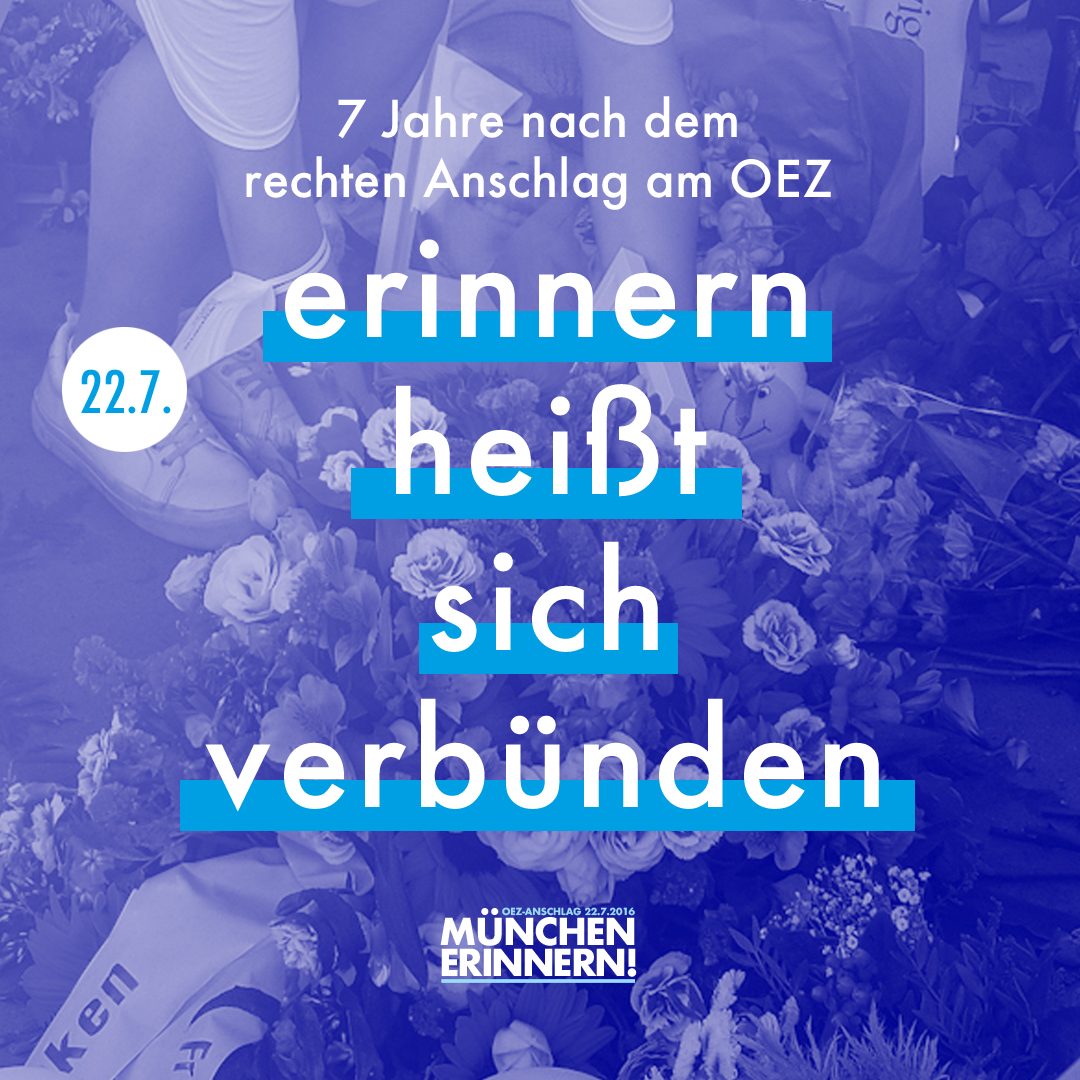 Am 22.7.2023 jährt sich der recht­ster­ror­is­tis­che und ras­sis­tis­che Anschlag am Olympia-Einkauf­szen­trum (OEZ) in München zum siebten Mal.