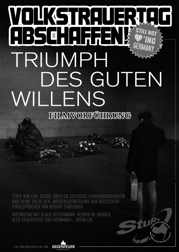 Der Dokumentarfilm setzt sich filmisch mit den Texten des Publizisten Eike Geisel (1945–1997) auseinander. Im Zentrum stehen Geisels Kritiken an der deutschen Erinnerungspolitik — wie sie beispielsweise jedes Jahr zum Volkstrauertag zu Tage tritt — und seine These über die “Wiedergutwerdung der Deutschen”. Texte Geisels aus den 1990er Jahren, u.a. über die Neue Wache und das Holocaust-Mahnmal in Berlin, kontrastieren die heutigen Bilder der beschriebenen Gedenkstätten. Sie zeigen eine Normalität, die es eigentlich nicht geben dürfte.