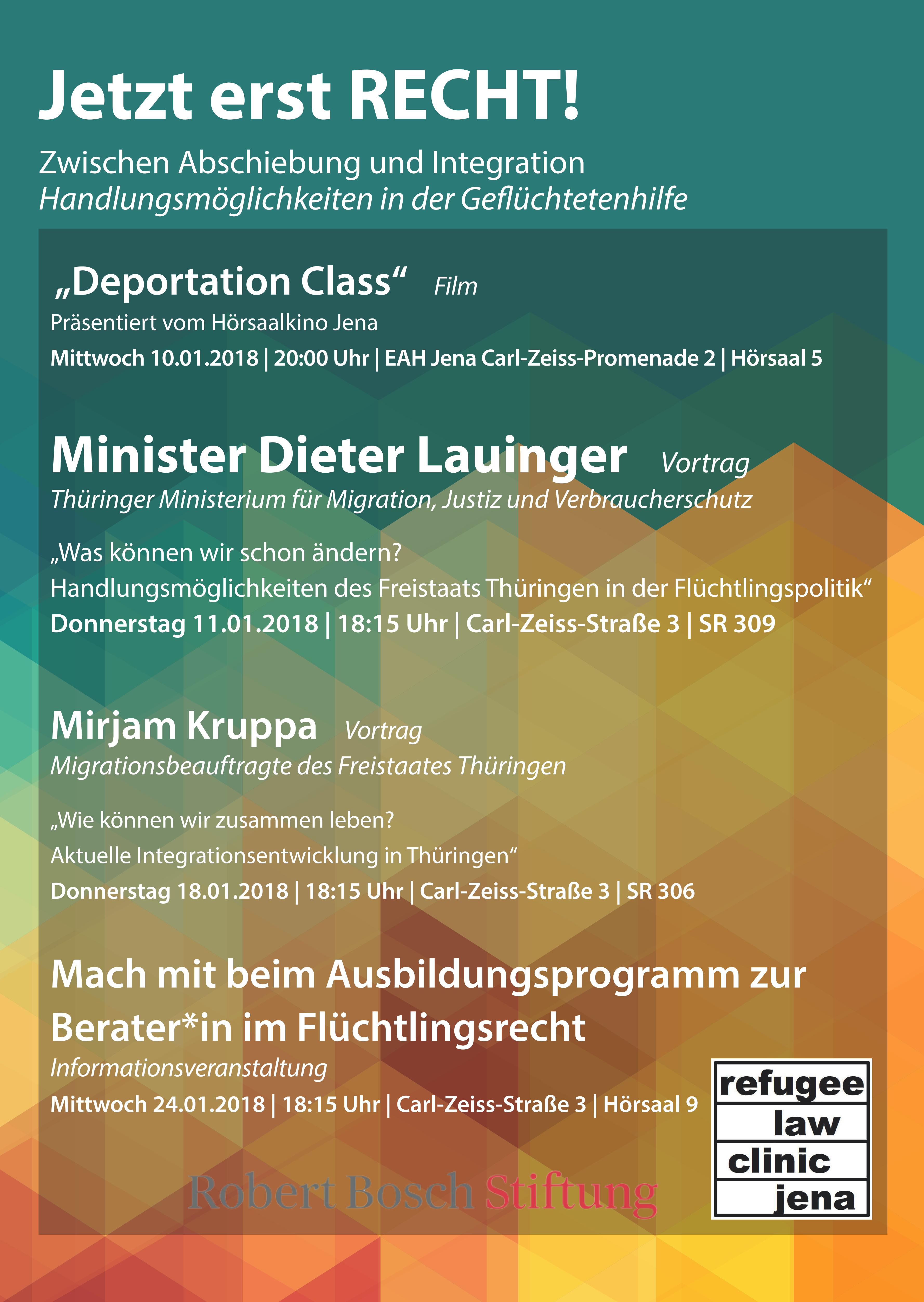 Vortrag von Minister Dieter Lauinger, Thüringer Ministerium für Migration, Justiz und Verbraucherschutz: “Handlungsmöglichkeiten des Freistaats Thüringen in der Flüchtlingspolitik im Rahmen von Bundes- und Europarecht”.