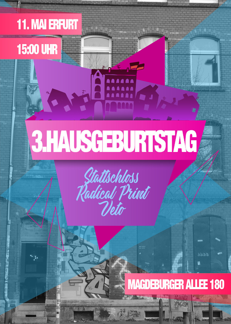 2 Jahre ist es nun schon her, das wir unsere Pantoffeln im stattschloß abgelegt haben. Im letzten Jahr ist wieder viel passiert, es haben u.a. super (viele:) ) Veranstaltungen stattgefunden. Wir haben viel pleniert, gebaut und gemalert, diskutiert, gekämpft und gefeiert.Darauf wollen wir mit euch anstoßen und laden euch zu einem glitzerhaft, berauschenden Fest für alle Sinne ein.