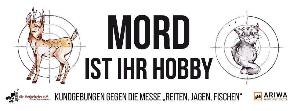 Anlässlich der Messeveranstaltung „Reiten, Jagen, Fischen“, die in diesem Jahr zum 18. Mal stattfindet, führen die Vereine „Animal Rights Watch“ und „die tierbefreier“ am 19. März 2016 zwei Kundgebungen durch, die die Erfurter über die Folgen und Ethik der sog. Hobbys — als solche werden sie in der Veranstaltungsbeschreibung angepriesen — aufklären.