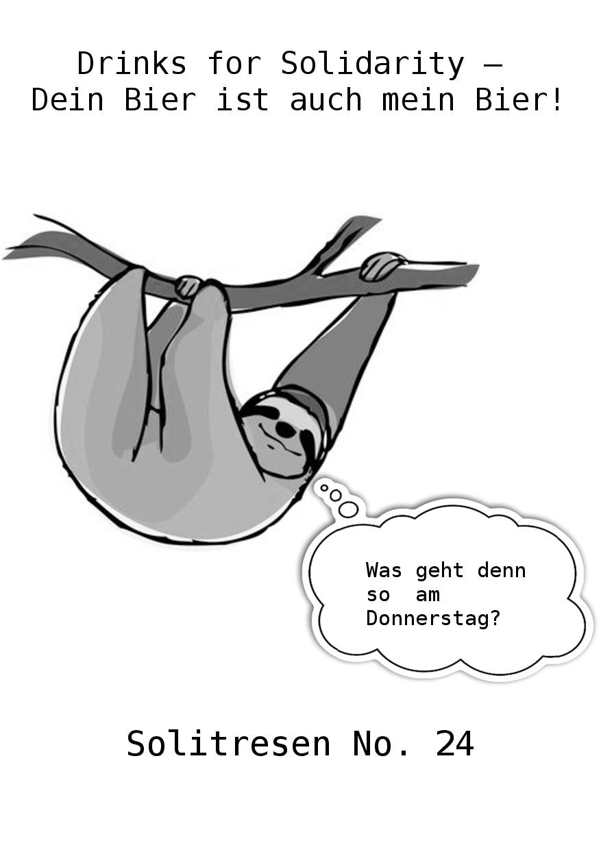 Der Solitresen Nr. 24 findet am Donnerstag, den 21. Dezember in der Insel statt. Mit dem Solitresen bieten wir regelmäßig für verschiedenste Leute die Möglichkeit, in gemütlicher Kneipenatmospähre zusammen zukommen, bei einem günstigen und undogmatischen Bier oder anderen Getränk. Euer Suff ist einem guten Zweck gewidmet, da die Einnahmen des Abends diesmal die